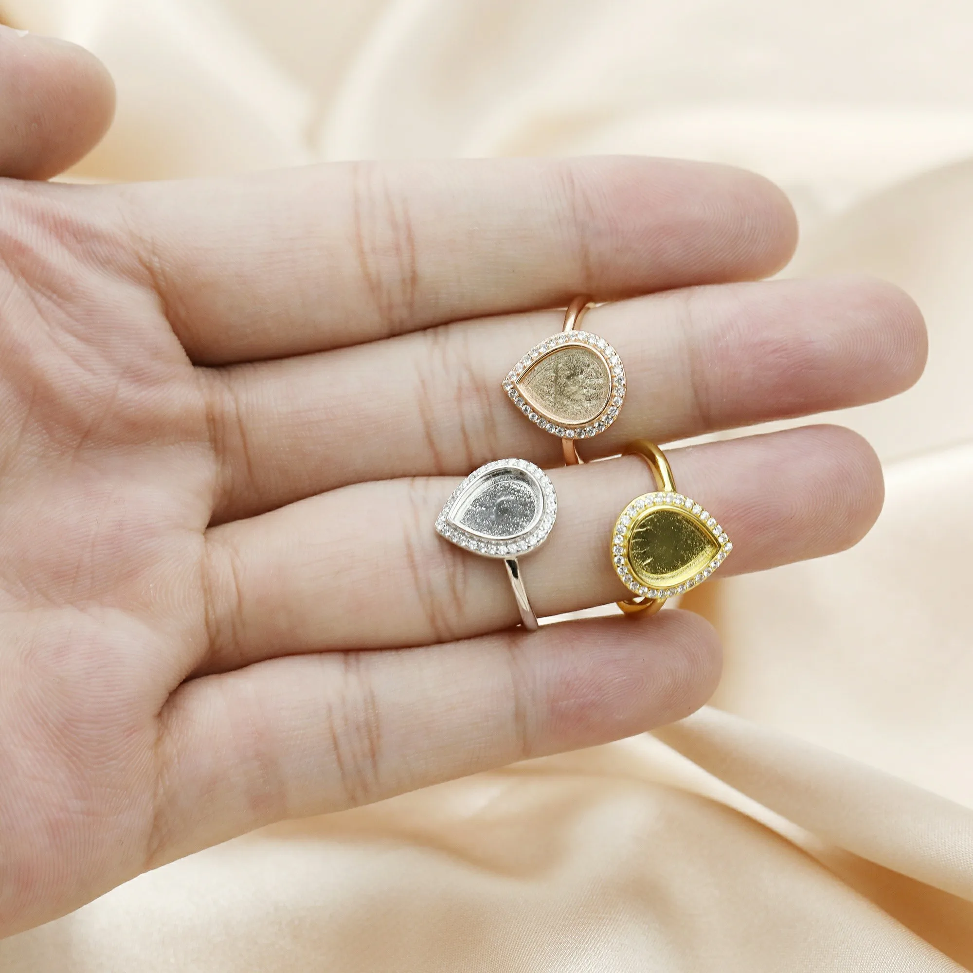 1pcs 8x10mm Pear Ring Settings Adjustable For Breast Milk Cabochon Solid 925 Sterling Silver Bezel Diy Supplies 1294208 Jewelry Findings Components Aliexpress