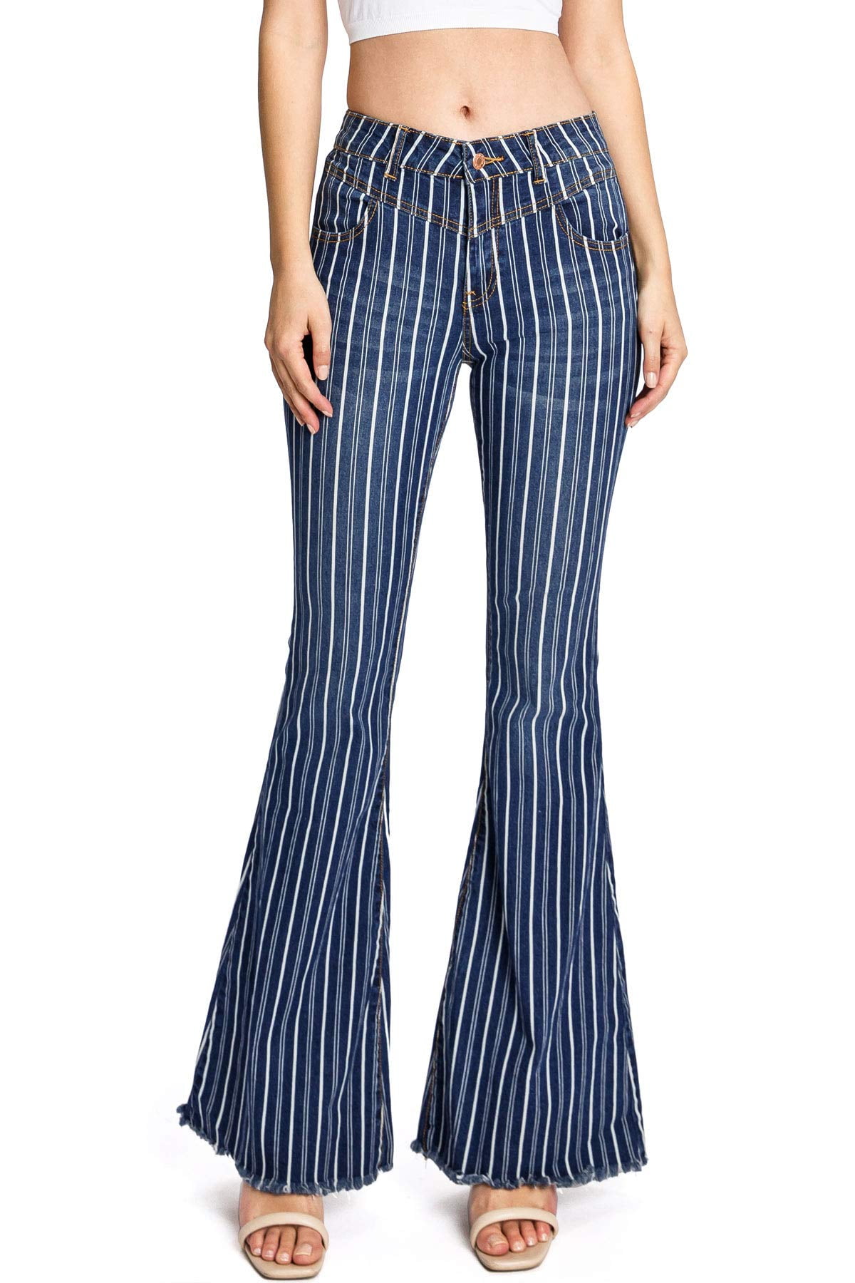 Litz By Uniq Women S Juniors Stripe Bell Bottom Flare Jeans 28 Denim Walmart Com