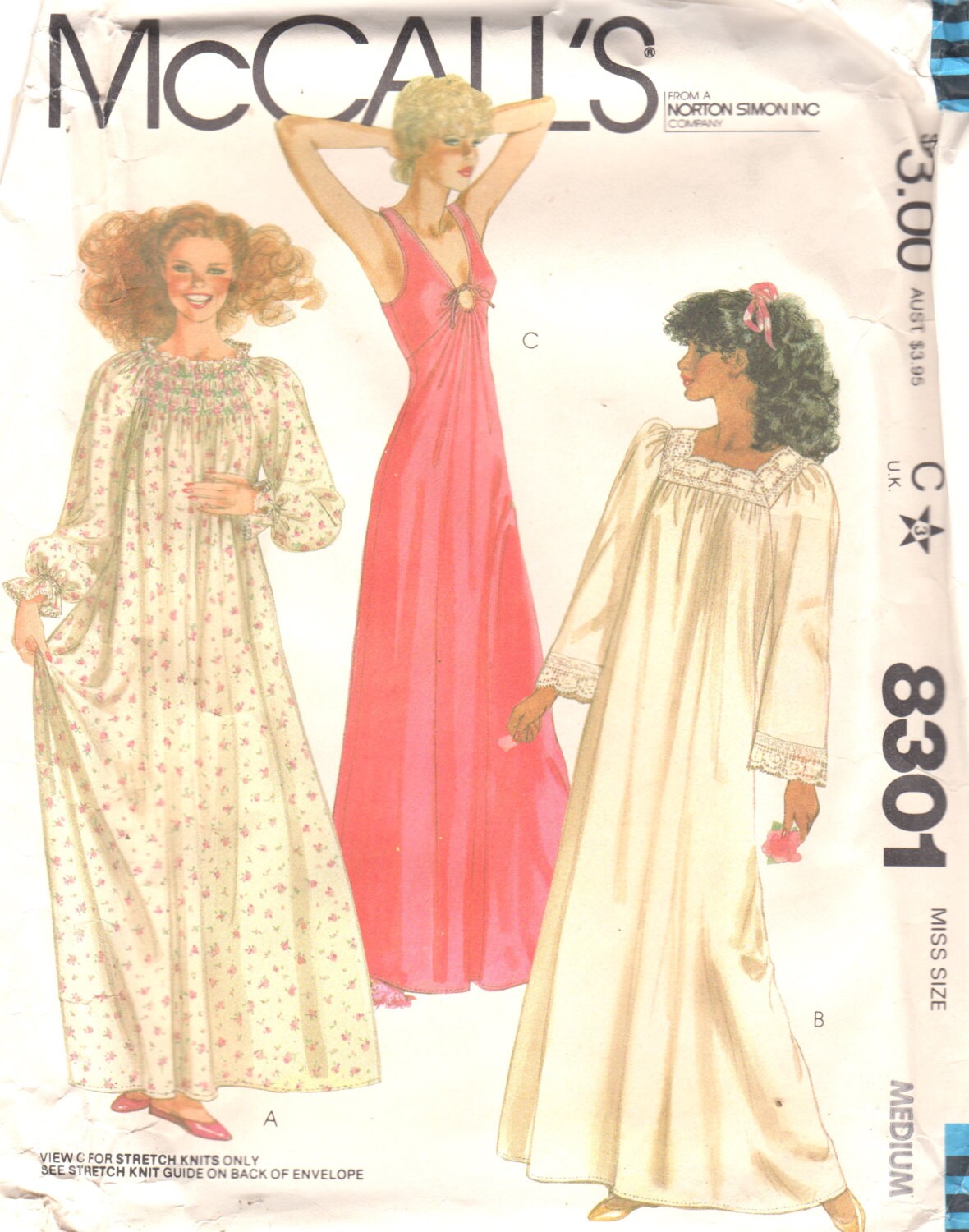 Mccalls 8301 1980s Misses Nightgown Pattern Romantic And Sexy Etsy De