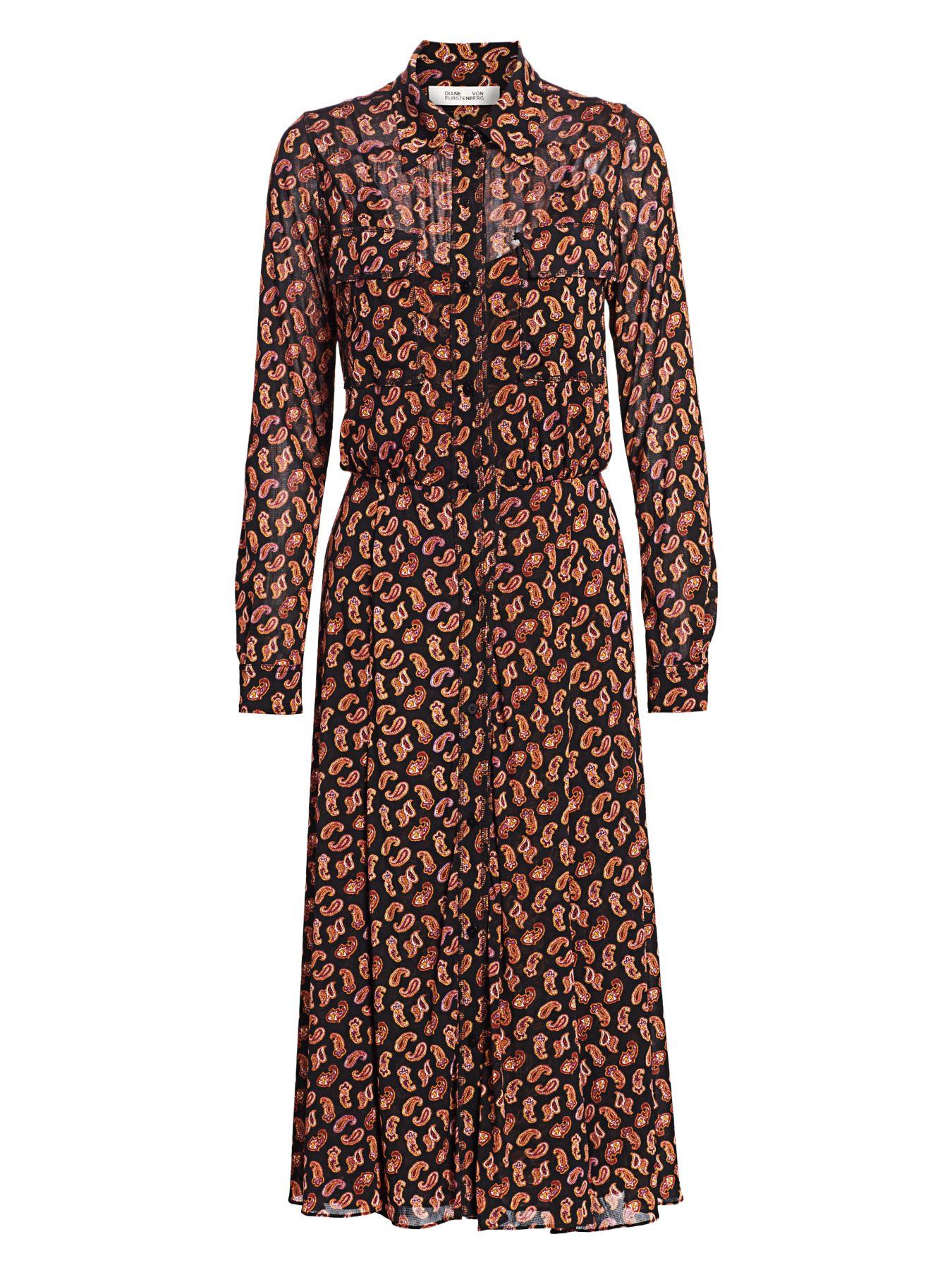 Diane Von Furstenberg Andi Paisley Print Long Sleeve Shirt Dress In Black Lyst